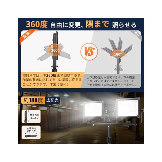 【高効率な照明性能】この50W*2のLED投光器は、6500Kの色温度を持ち、昼間のような明るさを提供します。高効率のLED技術を採用しており、エネルギー消費を抑えつつ、明るい光を実現します。このため、作業環境やイベント会場など、様々なシーンでの使用が可能です。特に夜間の作業や屋外イベントでは、十分な明るさを確保し、作業効率を向上させることができます。また、この投光灯は耐久性に優れており、長時間の使用にも耐える設計となっています。LEDの特性として、発熱が少ないため、周囲の温度が上昇しにくく、安全に使用できます。持続的な明るさとエネルギー効率を兼ね備えたこの製品は、照明を必要とするあらゆる場所に最適です。