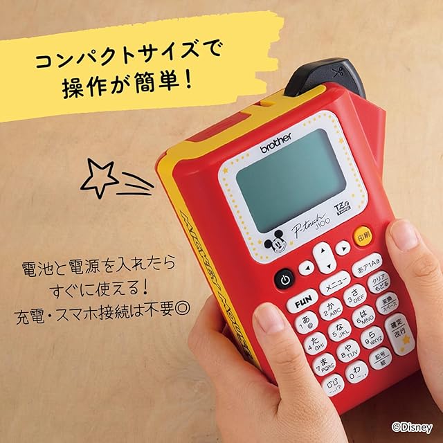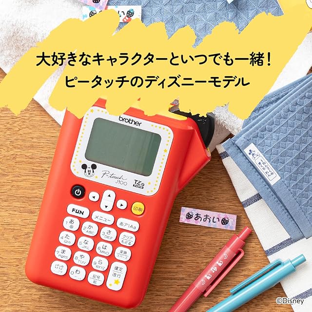 ブラザー工業 ラベルライター ピータッチ PT-J100MCR ミッキーレッド(3.5mm~12mm幅/TZeテープ)