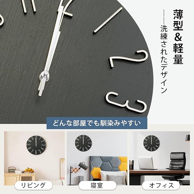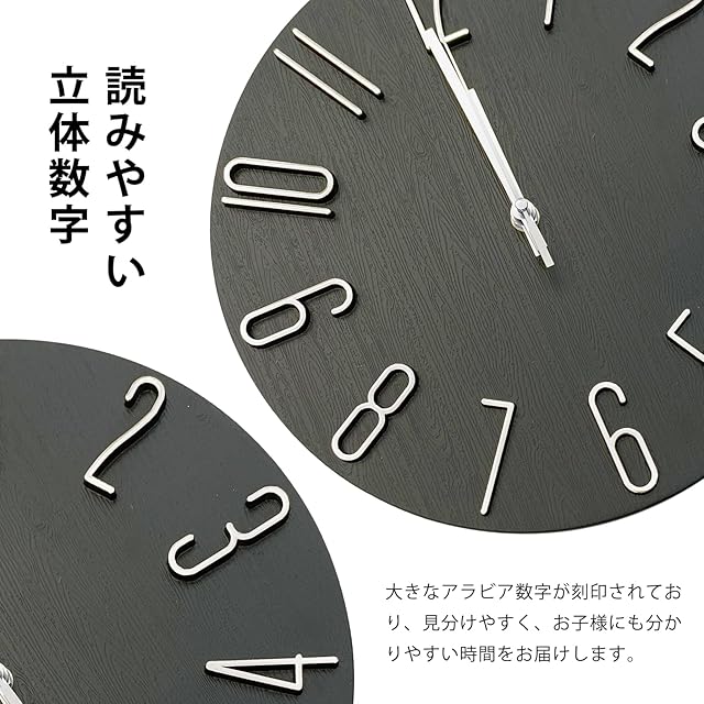 【3D大文字・視認性】大きな3Ⅾアラビア数字が採用され、高い視認性を提供し、子供たちにも時間が分かりやすいです。スタイリッシュで和室や洋室にも調和し、簡単に取り付けるだけでおしゃれな空間を瞬時に演出!