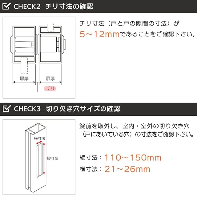 【適合】万能型なので多くの錠前に適合しています。取り付けできない場合もあるので、画像のチェックポイントをご確認ください。
