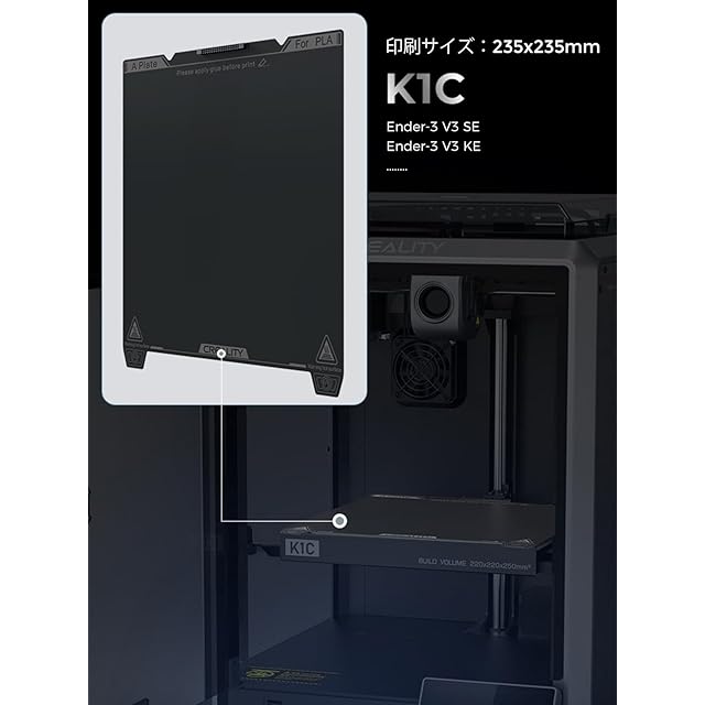 Creality PEI シート 235x235mm ノズル口拭きデザイン テクスチャなし プラットフォームシート K1C 3Dプリンター 専門 パーツ