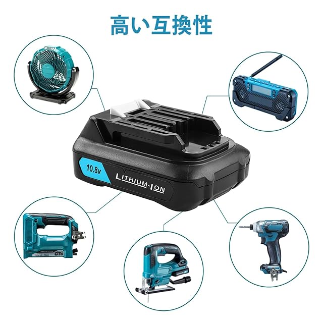 【商品のメリット】容量が拡大し、3000mAh大容量で長時間作業が可能。マキタ10.8V純正バッテリーと同様に使用でき、遜色がない互換品です。メモリー効果がないので、充電を続けてもいいです。自己放電が少ないため、長期保存しても充電に近い作業ができます。制御基板には充電を制御する保護回路を搭載!充電回数を減らし、高容量の小型軽量化を実現し、作業効率を大幅に向上しました。