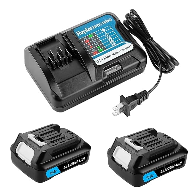 Powilling BL1015B 互換 マキタ 10.8v バッテリー DC10WD充電器セット マキタバッテリー10.8V BL1015 BL1030 BL1040 BL1050 BL1060 A-59863 マキタ10.8V充電器DC10WD、DC10SA、DC10WC、DC18REなど対応 【10.8バッテリー2個+DC10WD充電器1個セット】
