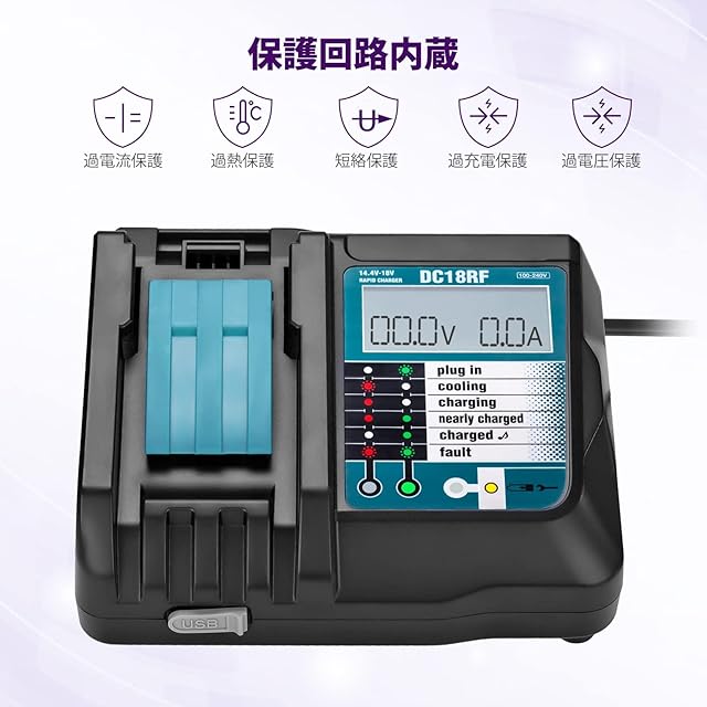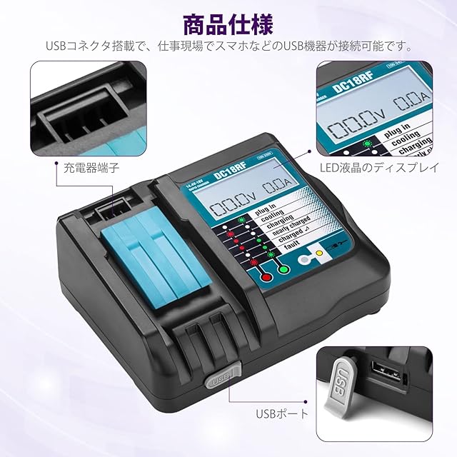 商品名:18v バッテリー DC18RF 充電器セット マキタ バッテリー 電動工具用バッテリー BL1815、BL1830、BL1840、BL1850、BL1860Bマキタ 互換バッテリー