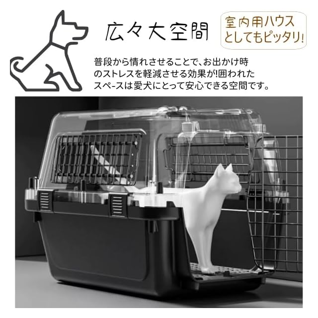 ■おでかけからお家の中までコレ1台!公共交通機関の利用時や避難時に便利です。 ■頑丈なハードタイプなので外からの衝撃に強く、安定感抜群です。 ■取り外し可能の扉は、左右どちらからでも開け閉めができて使いやすいです。 ■側面すべてに通気口があり、風通しが良く快適な温度を保てます。 ■大き目の格子扉は中の様子が確認でき、飼い主さんもペットも安心です。
