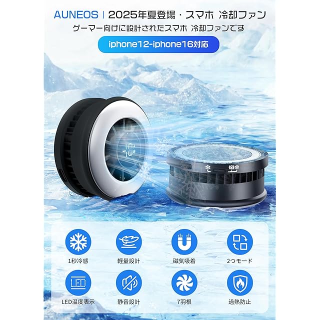 商品名:AUNEOS スマホ 冷却ファン ペルチェ素子【ドイツ レッド•ドット賞受賞製品】瞬間冷却スマホクーラー 凍結可能 LED温度表示 Typ-c給電式 小型軽量 静音設計 Tpye-c充電ケーブル付き ゲーム/ライブ/写真撮影/動画視聴/テレワーク時に対応 日本語説明書 iPhone12~iPhone16対応 (ブラック)