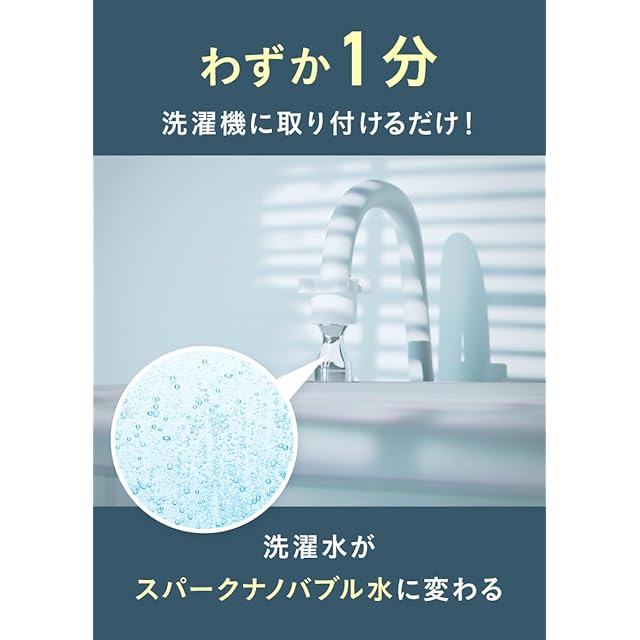 9億個のスパークナノバブルで”汚洗濯”とさよなら ■日本の洗濯を変える3つの性能 【洗浄力】【除菌力】【繊維に優しい仕上がり】 ■わずか1分で簡単に取付完了 ■取り付けるだけで洗濯水がスパークナノバブル水に変化 ■水中の空気を取り込む自然発生方式【特殊キャビテーション】 ■国内メーカーの洗濯機全機種対応