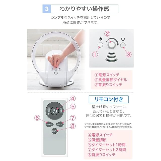 ✅【リモコン&本体操作対応】 本体の操作ボタンに加え、リモコンでも風量調節・首振りが可能で便利。