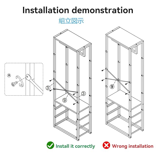 安定感を与え&がたつき防止:転倒防止装置が整備されており、360°調整できアジャスターも付きなので、安心してお使いいただけます。構造が分かりやすく、組み立て用の説明書も付属しており、女性の方でも簡単に組み立てできます。