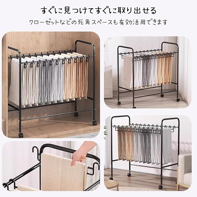 【移動も固定もストレスなし、暮らしに溶け込む快適設計】ズボンハンガーラックは、360度回転式のキャスターを備え、スムーズな移動と安定した固定が可能です。リビング、ランドリールーム、クローゼットなど、どこでも自由に動かせる柔軟性が魅力です。掃除や模様替えの際も移動が簡単で、日常の使いやすさが格段にアップします。