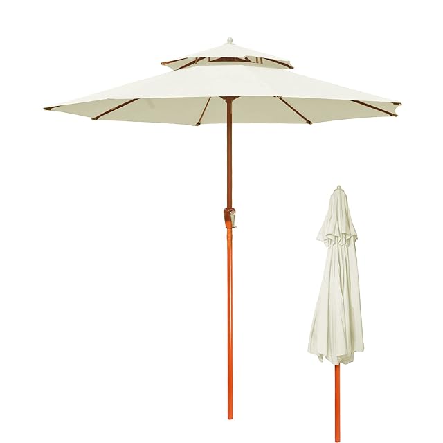 商品名:パラソル 大型 ガーデンパラソル 270cm ハンドル開閉 鉄製 ワイドパラソル UVカット 撥水加工 折り畳み 軽量 ハンギングパラソル ビーチパラソル 庭 テラス ベランダ オープンカフェ ガーデン (アイボリー)