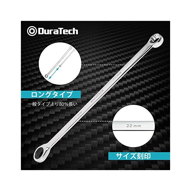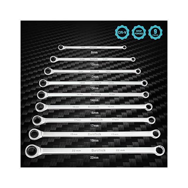 DURATECH メガネレンチセット 板ラチェットレンチ ロングタイプ ミリサイズ 片側ラチェット構造 72ギア ミラー仕上げ 8~22mm 収納ケース付 9本組