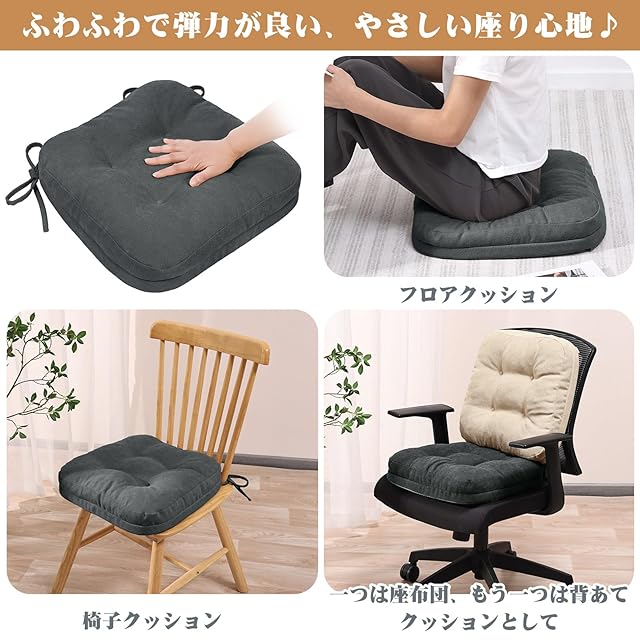 【用途広い】クッション性が高い、座り心地が良い、どこに座ってもフィット。オフィスチェア、ダイニングチェア、回転座椅子クッション、籐椅子クッション、車にもお勧めます。 また、和室やリビングの床や畳の上に座るフロアクッション、ソファや椅子に置いて背当てとしても使えます。
