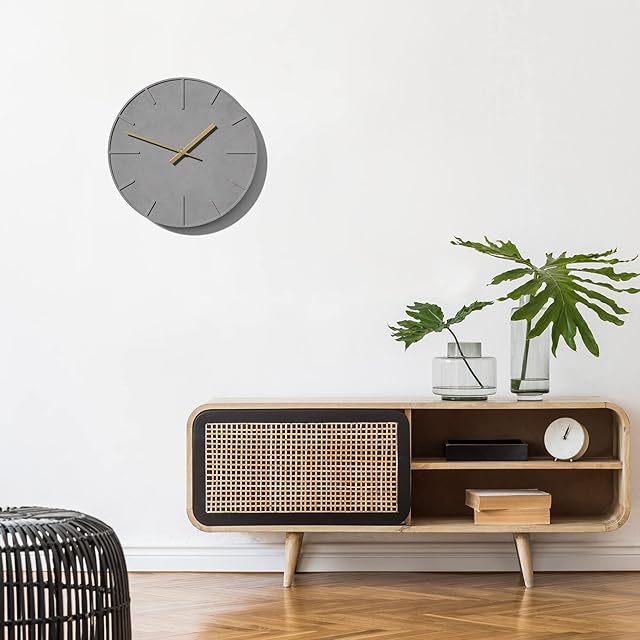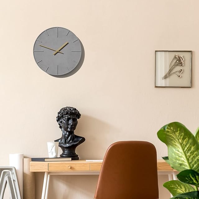 TAHITICA 掛け時計 静音 セメント製 壁掛け時計 ウォールクロック シンプル モダン 北欧 30CM 部屋飾り リビング インテリア 引越し祝い おしゃれ (グレー)