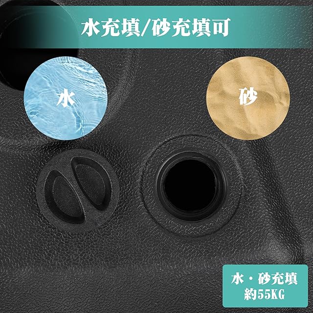 【安定性抜群・風に強い】本社のパラソルベースはパラソルをしっかり固定し、パラソルを安全に使えるための必需品です。55KGの水や砂を注入し、安定性が優れており、風に強いです。