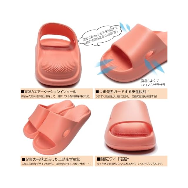●【抗菌防臭最新EVA素材/ 汚れに強い/丸洗い可】環境にやさしい最新EVA素材を一体成型で、何回洗濯してもこうきん機能が持続するAg+あんしんスリッパ!、解放な踵部分だから、水溜まらなく、余分な水を流しやすく、シャワー浴びてくるも問題ない。通年適用サンダルとして、室内に使用に限らず、屋外の街歩きなどにもサンダルとしての使用もメリット。