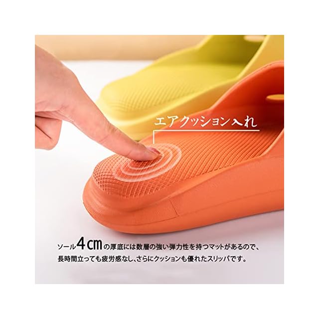 ●【理学療法士が推奨モデ腰・足裏の痛みを激減!】Alvisto独自開発した無重力リラックスサンダル。穿く感じがない、無感リラックスを実現しました。ソール4㎝の厚底には数層の強い弾力性を持つマットがあるので、フワフワとほどよい弾力があり弾む感じで履き心地がよく、柔らか過ぎず硬すぎず、長時間使っても凹まず、踏みしめたときの適度な弾力もよいので、長時間立っても疲れや痛みを感じにくく、一日酷使した脚を労る一足。踵部分にはエアクッションをさらに入れたため、地面からの衝撃を100%吸収し、★短距離の通勤用や室内・ベランダやゴミ出し用・介護の仕事の方や立ち仕事用などにはしっかりサポートできるふわ楽室内エアースリッパ!