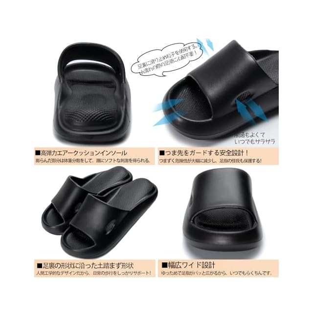 商品名:[Alvisto] 理学療法士推奨 スリッパ 室内 サンダル 4cm超厚底 エアースリッパ ルームシューズ レディース メンズ ベランダ バス トイレ 超軽量 静音防滑 柔らか 抗菌防臭 EVA air slippers ブラック 23.5-24.5cm