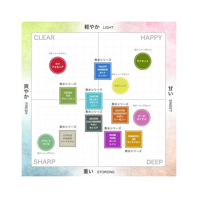 【秋の訪れを告げる金木犀の芳香漂うフルーティフローラル】三大香木の1つである金木犀を中心に、秋の訪れを表現したフルーティフローラル調の香り。柔らかな甘みと共に秋の訪れをつげる金木犀と、水々しい果実感溢れるアプリコットの香りに包まれる、色彩豊かな秋を表現しました。華やかで魅惑的な印象に加え、ほのかなゴージャスさを感じさせます。