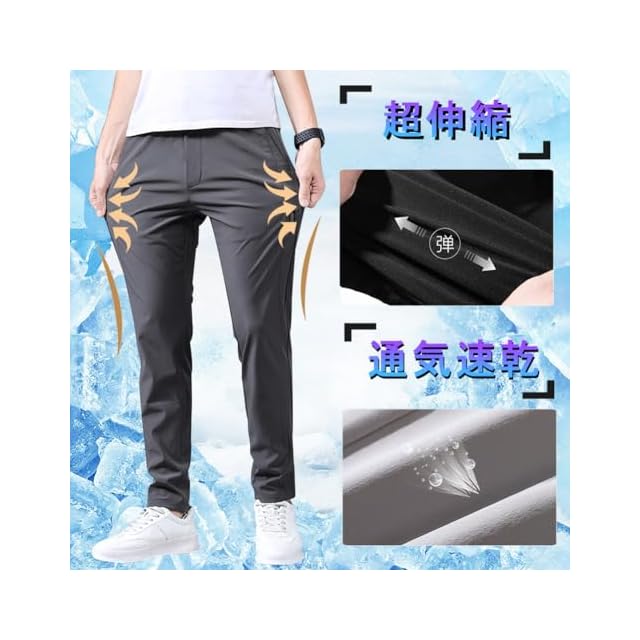 【接触冷感】冷感生地を採用して、肌と接触した瞬間に温度を下げるクール感があり、夏の常識を覆す!夏の蒸れに対応する男性用ジョガーパンツ。