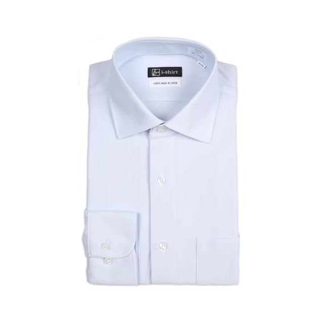 [アイシャツ] i-Shirt 完全ノーアイロン ストレッチ 超速乾 レギュラーフィット 長袖 アイシャツ ワイシャツ メンズ サックス 新レギュラーフィット 長袖セミワイド ストライプ M15123001481 首回り41cm×裄丈82cm