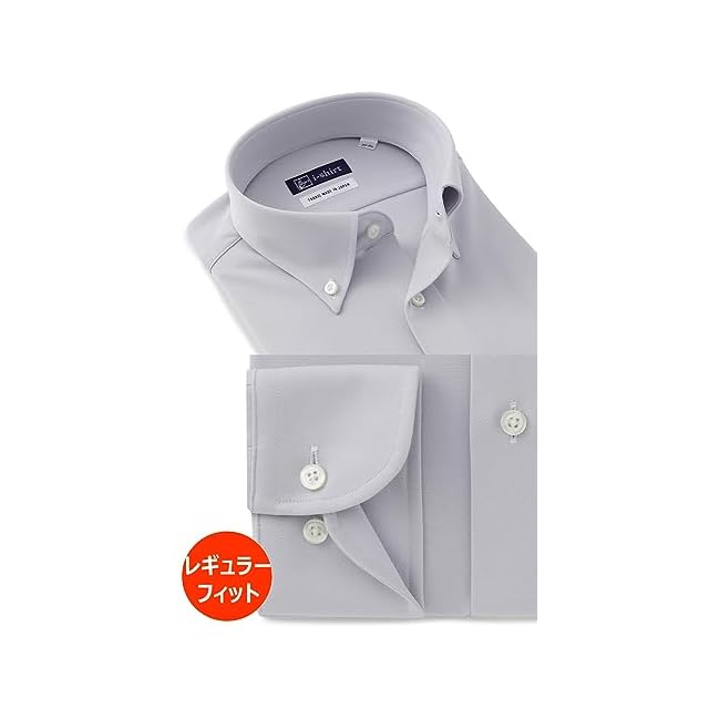 [アイシャツ] i-Shirt 完全ノーアイロン ストレッチ 超速乾 レギュラーフィット 長袖 アイシャツ ワイシャツ メンズ L.グレー 新レギュラーフィット 長袖ボタンダウン 無地 M15121004412 首回り45cm×裄丈86cm