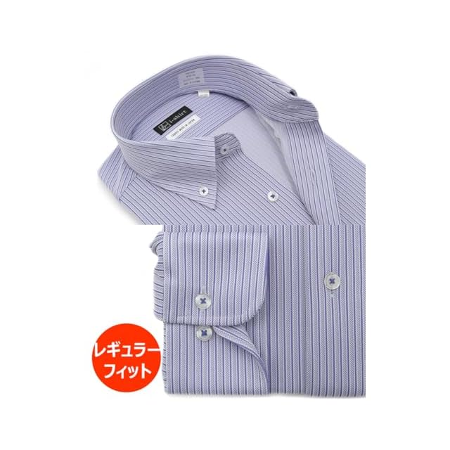 [アイシャツ] i-Shirt 完全ノーアイロン ストレッチ 超速乾 アイシャツ ワイシャツ メンズ ブルー ストライプ柄 ボタンダウン レギュラーフィット 長袖 M15125000284 首回り43cm×裄丈84cm