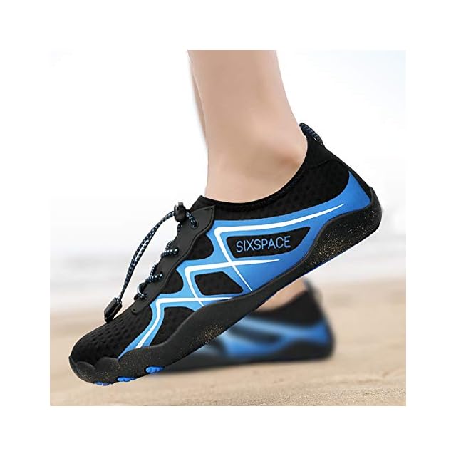 [SIXSPACE] マリンシューズ ウォーターシューズ アクアシューズ ビーチシューズ スニーカー ヨガ シュノーケリング 水陸両用 軽量 通気 ブルー 25.5cm