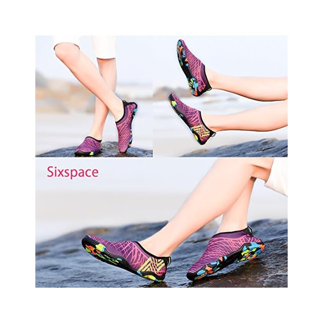 Sixspace マリンシューズ ウォーターシューズ シュノーケリング アクアシューズ ビーチサンダル 男女兼用 水陸両用 ローズ 26cm