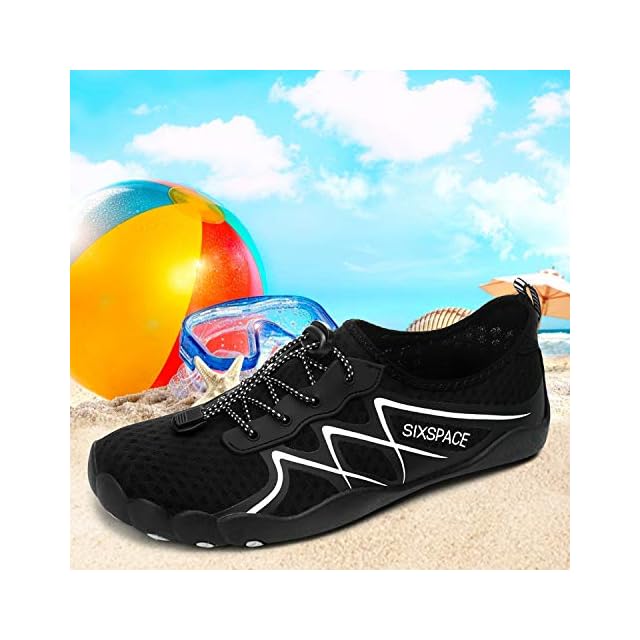 [SIXSPACE] マリンシューズ ウォーターシューズ アクアシューズ ビーチシューズ スニーカー ヨガ シュノーケリング 水陸両用 軽量 通気 ブラック 27.5cm