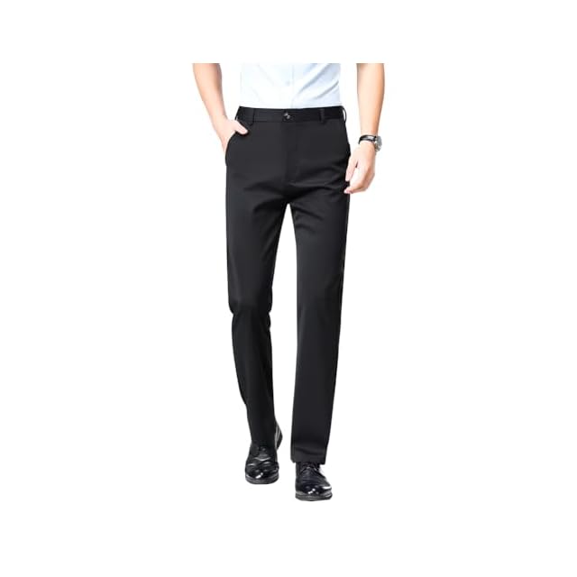 [HMT] スラックス メンズ ズボン 夏服 冷感パンツ スーツパンツ 接触冷感 薄手 ロングパンツ メンズ ビジネス 仕事着 パンツ ノータック ストレッチ ウォッシャブル スリム 美脚 大きいサイズ 春 夏 (JP, 数字サイズ, 33, #01:ブラック)