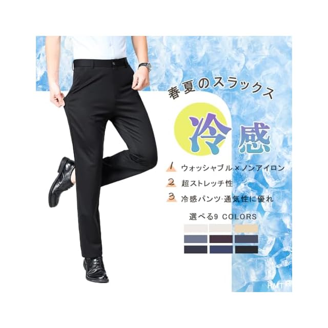[HMT] スラックス メンズ ズボン 夏服 冷感パンツ スーツパンツ 接触冷感 薄手 ロングパンツ メンズ ビジネス 仕事着 パンツ ノータック ストレッチ ウォッシャブル スリム 美脚 大きいサイズ 春 夏