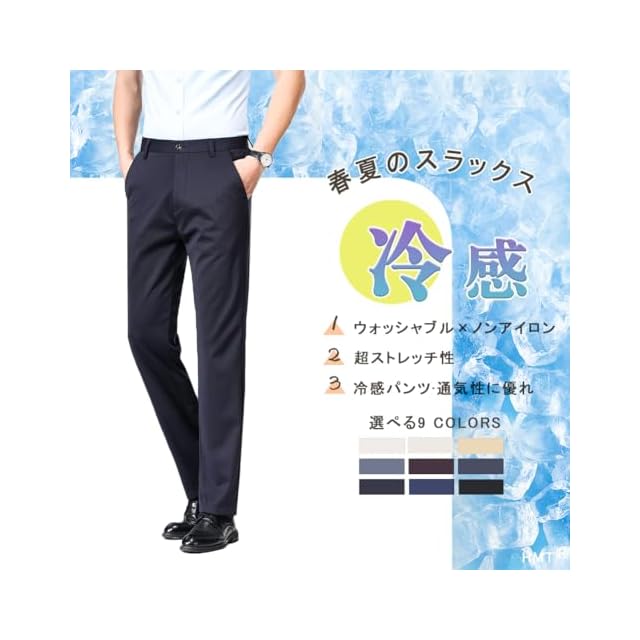 商品名:[HMT] スラックス メンズ ズボン 夏服 冷感パンツ スーツパンツ 接触冷感 薄手 ロングパンツ メンズ ビジネス 仕事着 パンツ ノータック ストレッチ ウォッシャブル スリム 美脚 大きいサイズ 春 夏