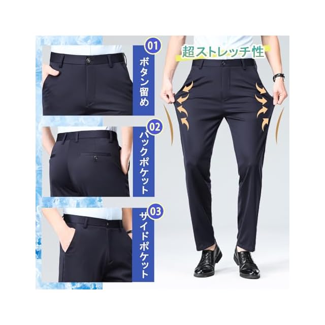 [HMT] スラックス メンズ ズボン 夏服 冷感パンツ スーツパンツ 接触冷感 薄手 ロングパンツ メンズ ビジネス 仕事着 パンツ ノータック ストレッチ ウォッシャブル スリム 美脚 大きいサイズ 春 夏