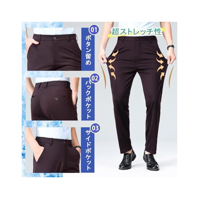 商品名:[HMT] スラックス メンズ ズボン 夏服 冷感パンツ スーツパンツ 接触冷感 薄手 ロングパンツ メンズ ビジネス 仕事着 パンツ ノータック ストレッチ ウォッシャブル スリム 美脚 大きいサイズ 春 夏
