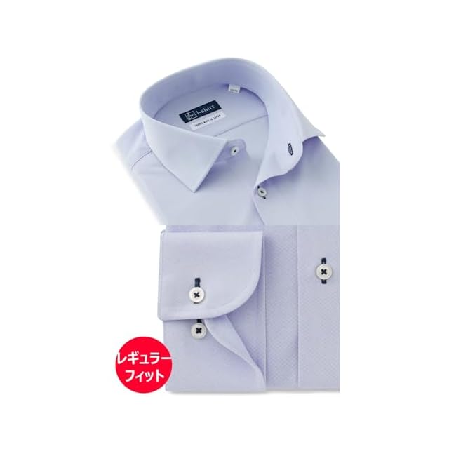 [アイシャツ] i-Shirt 完全ノーアイロン ストレッチ 超速乾 レギュラーフィット 長袖 アイシャツ ワイシャツ メンズ サックス 新レギュラーフィット 長袖ワイドカラー チェック M15121003881 首回り39cm×裄丈78cm