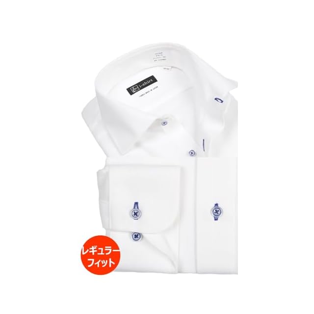 [アイシャツ] i-Shirt 完全ノーアイロン ストレッチ 超速乾 レギュラーフィット 長袖 アイシャツ ワイシャツ メンズ ホワイト 新レギュラーフィット 長袖セミワイド ストライプ M15123001301 首回り45cm×裄丈86cm