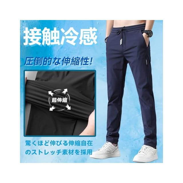 商品名:接触冷感 ズボン メンズ パンツ 夏 ジョガーパンツ 軽量 ストレッチ スウェットパンツ 涼しい 速乾 ボトムス 涼感 レギパン メンズ 薄手 イージー エアパン 部屋着 ゴルフ 夏服 アイスシルクパンツ