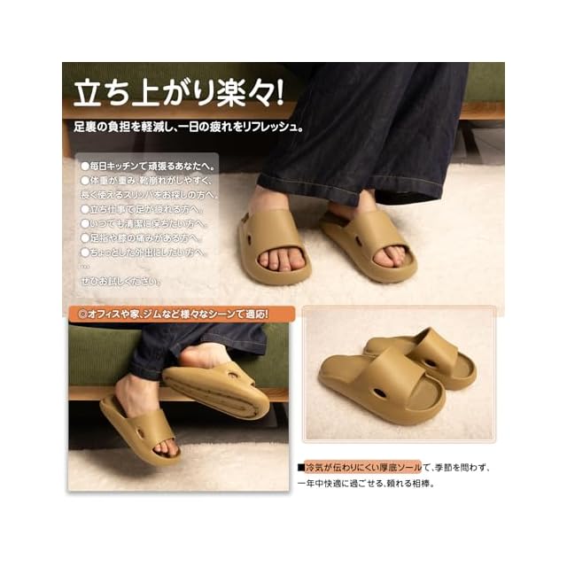 ●【抗菌防臭最新EVA素材/ 汚れに強い/丸洗い可】環境にやさしい最新EVA素材を一体成型で、何回洗濯してもこうきん機能が持続するAg+あんしんスリッパ!、解放な踵部分だから、水溜まらなく、余分な水を流しやすく、シャワー浴びてくるも問題ない。通年適用サンダルとして、室内に使用に限らず、屋外の街歩きなどにもサンダルとしての使用もメリット。