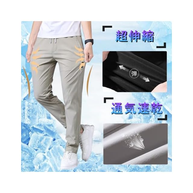 【接触冷感】冷感生地を採用して、肌と接触した瞬間に温度を下げるクール感があり、夏の常識を覆す!夏の蒸れに対応する男性用ジョガーパンツ。