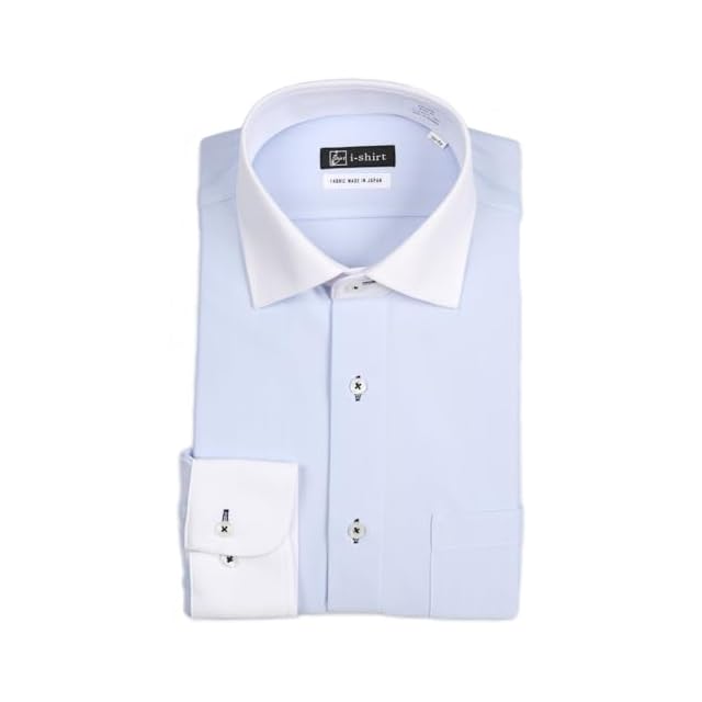 [アイシャツ] i-Shirt 完全ノーアイロン ストレッチ 超速乾 レギュラーフィット 長袖 アイシャツ ワイシャツ メンズ ブルー 新レギュラーフィット 長袖セミワイド ストライプ M15123001484 首回り43cm×裄丈86cm