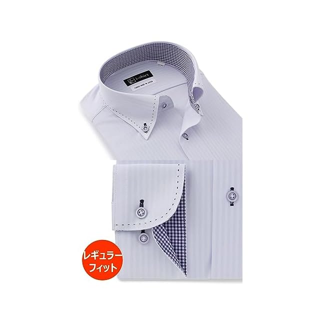[アイシャツ] i-Shirt 完全ノーアイロン ストレッチ 超速乾 レギュラーフィット 長袖 アイシャツ ワイシャツ メンズ サックス 新レギュラーフィット 長袖ボタンダウン ストライプ M15121003581 首回り41cm×裄丈82cm