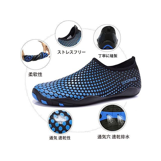 商品名:Sixspace マリンシューズ ウォーターシューズ 水陸両用 アクアシューズ シュノーケリング ビーチシューズ 軽量 通気 ヨガ サーフィン 男女兼用 青 24.5cm