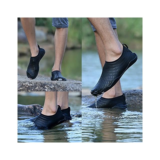 Sixspace マリンシューズ ウォーターシューズ 水陸両用 アクアシューズ シュノーケリング ビーチシューズ 軽量 通気 ヨガ サーフィン 男女兼用 黒 25.5cm