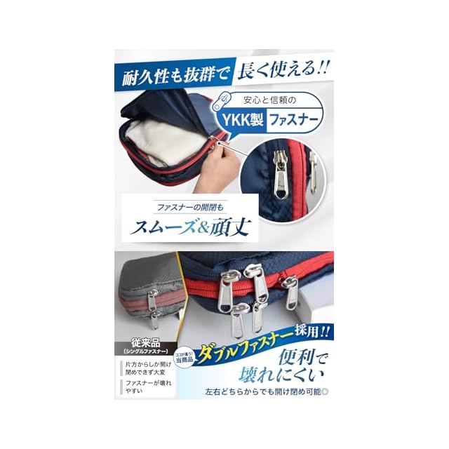 ✅【独自のダブルファスナー】全ての ファスナーにYKK製を採用し、さらに左右どちらからでも開きやすい、ダブルファスナーに改良しました!