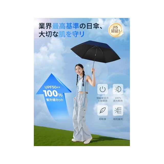 商品名:【JIS認証·現役皮膚科医監修】日傘 UVカット100遮光遮熱 折り畳み【業界初!改良型ワンタッチ自動開閉】UPEBおりたたみ傘 188g-230g超軽量 コンパクト 紫外線遮断 折りたたみ傘 耐風撥水 晴雨兼用 携帯便利 日傘メンズ/レディース/ガールズ/ガールズ/子供/大人兼用 収納ポーチ付き 母の日 父の日 お祝い 誕生日プレゼント2年品質 (紺青, 100cm直径超大サイズ)