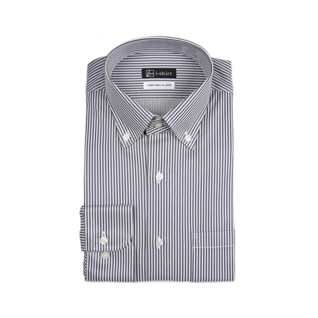 [アイシャツ] i-Shirt 完全ノーアイロン ストレッチ 超速乾 レギュラーフィット 長袖 アイシャツ ワイシャツ メンズ ネイビー 新レギュラーフィット 長袖ボタンダウン ロンドンストライプ M15123001188 首回り43cm×裄丈86cm