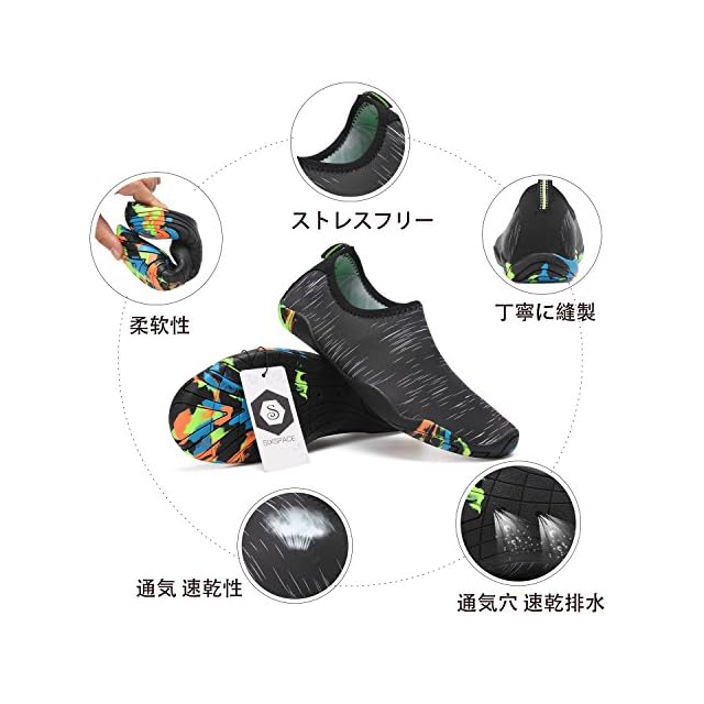 <b>【】</b> 弊社には、お客様の権益に対して、必ずいたします。 もしもお客様が商品に何か不満があったら、商品到着後30日以内に限り、無償で交換を承ります。ご安心してお買い求めください。<br><br> <b>商品紹介</b>:<br> <b>ヒールの高さ</b>:5ミリメートル<br> <b>材料組成</b>:ゴム、ソフトで快適です。<br> <b>ヒールタイプ</b>:フラット、屋外の春と夏に適しています。<br> <b>アッパー</b>:快適と弾力+ネオプレンゴム、柔らかい靴底。<br> <b>裏地</b>:ポリエステル+スパンデックス。吸湿性や速乾性が良い、足の爽やかさを保てます。<br> <b>ソール</b>:ソールは滑り止めのゴムです。だから、水、ジム、ビーチで楽しみを持つことができます。ソフトで柔軟です。<br> <b>スポットライト</b><br> <b>超軽量、脱ぐ履きやすい</b>:私たちのマリンシューズは軽量で圧縮できて、持ちやすい。履き口にあるつまみが迅速かつ簡単に脱ぎ履きに役に立つ。川遊びやマリンレジャーでも大活躍。<br> <b>用途</b>:水遊び、海水浴、散歩、お出掛け、アウトドアシーン、マリンレジャーや川遊び、サンダル、ウォーターパーク、ビーチ、マリンスポーツやダイビング、シュノーケリング、室内スポーツや、ジムなどでもランニングシューズ、ガーデニング、車の洗浄など、幅広い分野で使える!