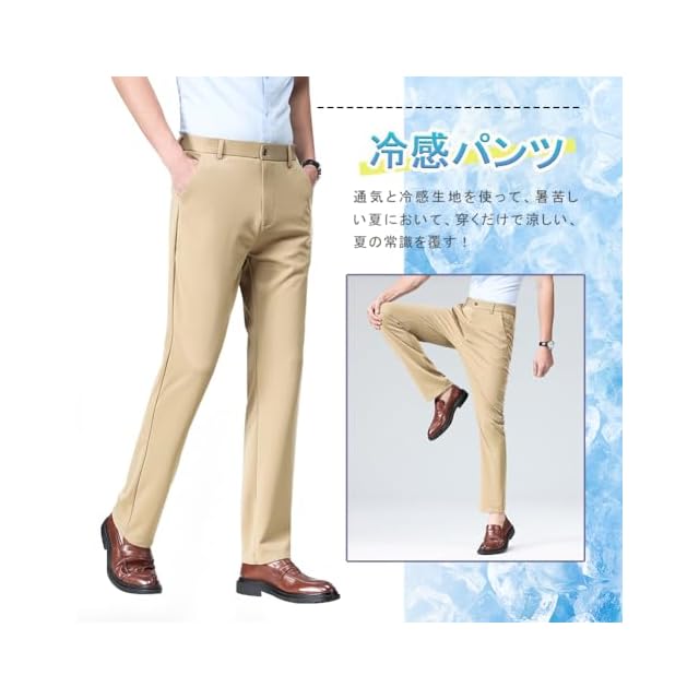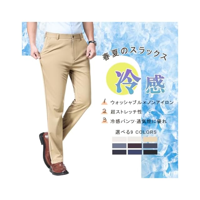 [HMT] スラックス メンズ ズボン 夏服 冷感パンツ スーツパンツ 接触冷感 薄手 ロングパンツ メンズ ビジネス 仕事着 パンツ ノータック ストレッチ ウォッシャブル スリム 美脚 大きいサイズ 春 夏
