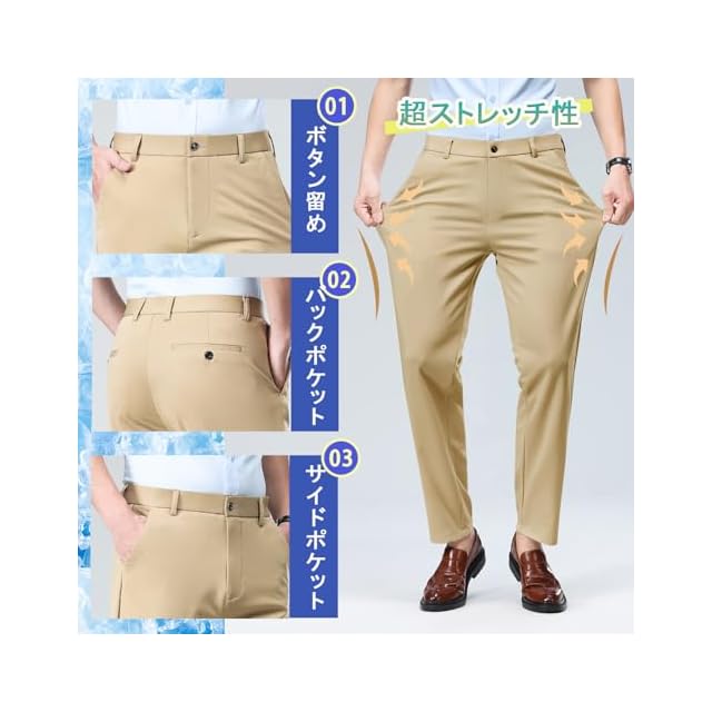 冷感パンツ メンズ スラックス アイスシルクパンツ ストレッチ 接触冷感 薄手 涼しい 大きいサイズ 夏 春 秋